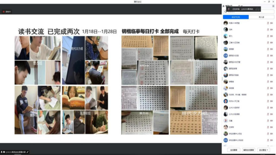 姜宏伟总结了前两周工作的完成情况,指出,各位指导教师坚持对学生社会实践学期的活动进行指导,对学生完成作业情况进行抽查,对宣传报道工作的完成情况进行分析评价,工作认真负责,耐心细致。生涯老师耐心指导学生撰写稿件,帮助批改,保证质量,均值得表扬。今后各位老师还要继续督促学生按时完成规定的项目,随时在群中报备学生们的表现,以便后续评分。希望各位指导教师针对工作中存在的不足及时改进,并对下一阶段的工作做出规划,让学生们在社会实践学期真正有所收获。