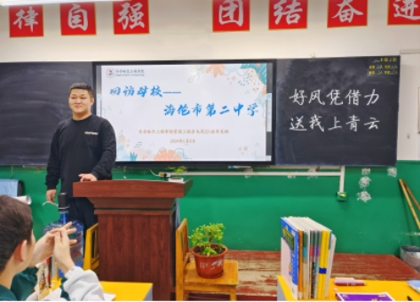 李昊桐的母校是黑龙江省海伦市第二中学,回校后,与老师和学弟学妹们深入交流,分享自身在大学阶段的学习生活体验,并为学弟学妹们提供实用的学习方法和备考策略。
