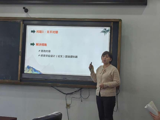 杨翠丽老师结合齐齐哈尔工程学院毕业设计要求,对毕业设计(论文)撰写的相关规范进行讲解,她对论文格式提出了具体要求并对其中一些基本格式设置进行解读,分析了典型问题并提出解决措施。