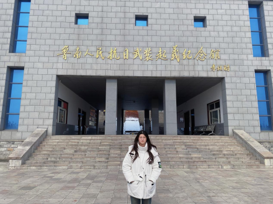 财管213班赵佳慧同学来到了鲁南人民抗日武装起义纪念馆,踏寻前辈遗迹,续庚红色血脉,缅怀革命英烈,与英烈“隔空对话”,身临其境地回顾先辈事迹,感悟红色精神。她表示,这次参观红色基地活动让她接受了一次深刻的爱党爱国主题教育的洗礼。作为党员,更加坚定了自己肩上的时代使命和责任,珍惜美好时光,努力成为社会有用之才。