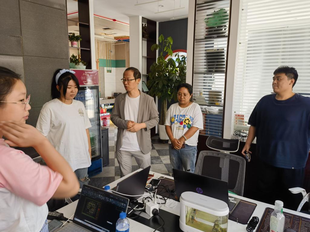 朱同威老师在了解了学生出勤情况、实习手册填写情况之后,听取了部分学生对近阶段实习内容的介绍及实习感悟。从学生的家装效果图的绘制以及对典型工作流程的阐述中可以看到,大家能够按照学校及专业要求开展专业实践学习。