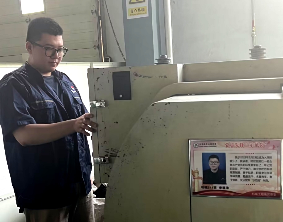 7月6日,机电工程系在校内实践基地齐三机床设立学生党员先锋“示范岗”。