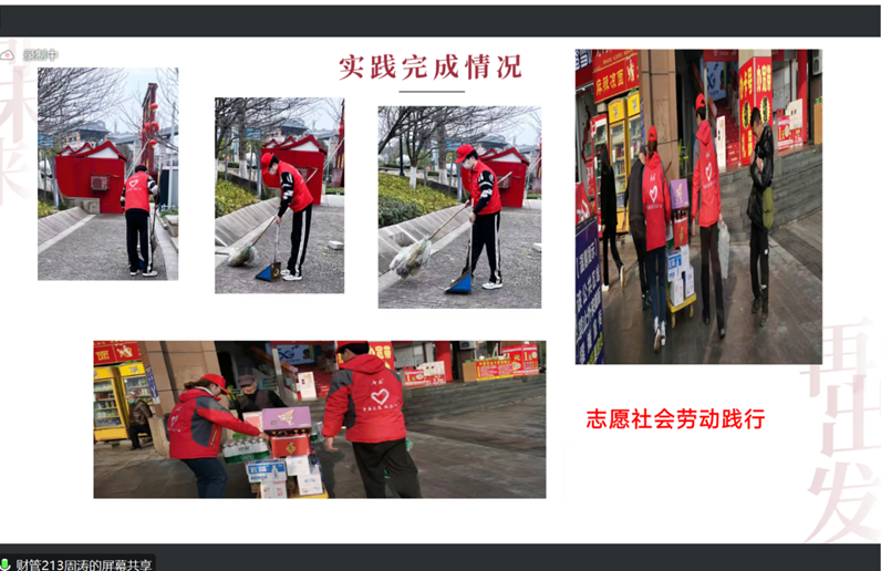 首先,孝佳骏老师对第四学期汇报内容提出相关要求。随后,财管专业的学生进行汇报。财管213班周涛同学分享了他在第四学期的社会调研、志愿服务等活动,因他在志愿服务表现突出,获得了当地街道的表扬。孝佳骏老师对第四学期阶段汇报进行了点评,对成绩优异的学生给予表扬,并鼓励学生再接再厉,取得更好的成绩。