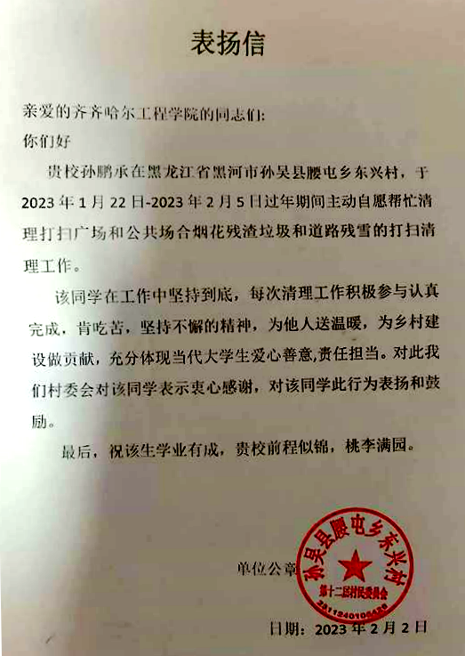 1月26日,我加入村委会卫生部门的志愿工作。当天的工作是收拾仓房,清扫街道上烟花爆竹燃放后的纸屑,以及道边路上的残雪。1月30日,我参加第二次清扫工作。这次的工作量较大,因为过年,人员少、任务重,尽管清扫工作很累,但我也很开心。这次的社会实践经历在书本上是学习不到的,我很高兴可以和村委会里的爷爷奶奶们相处、工作,我和他们沟通交流,获得了很多人生经验。在今后的生活中,我会继续积极参加志愿服务,提升自身能力。