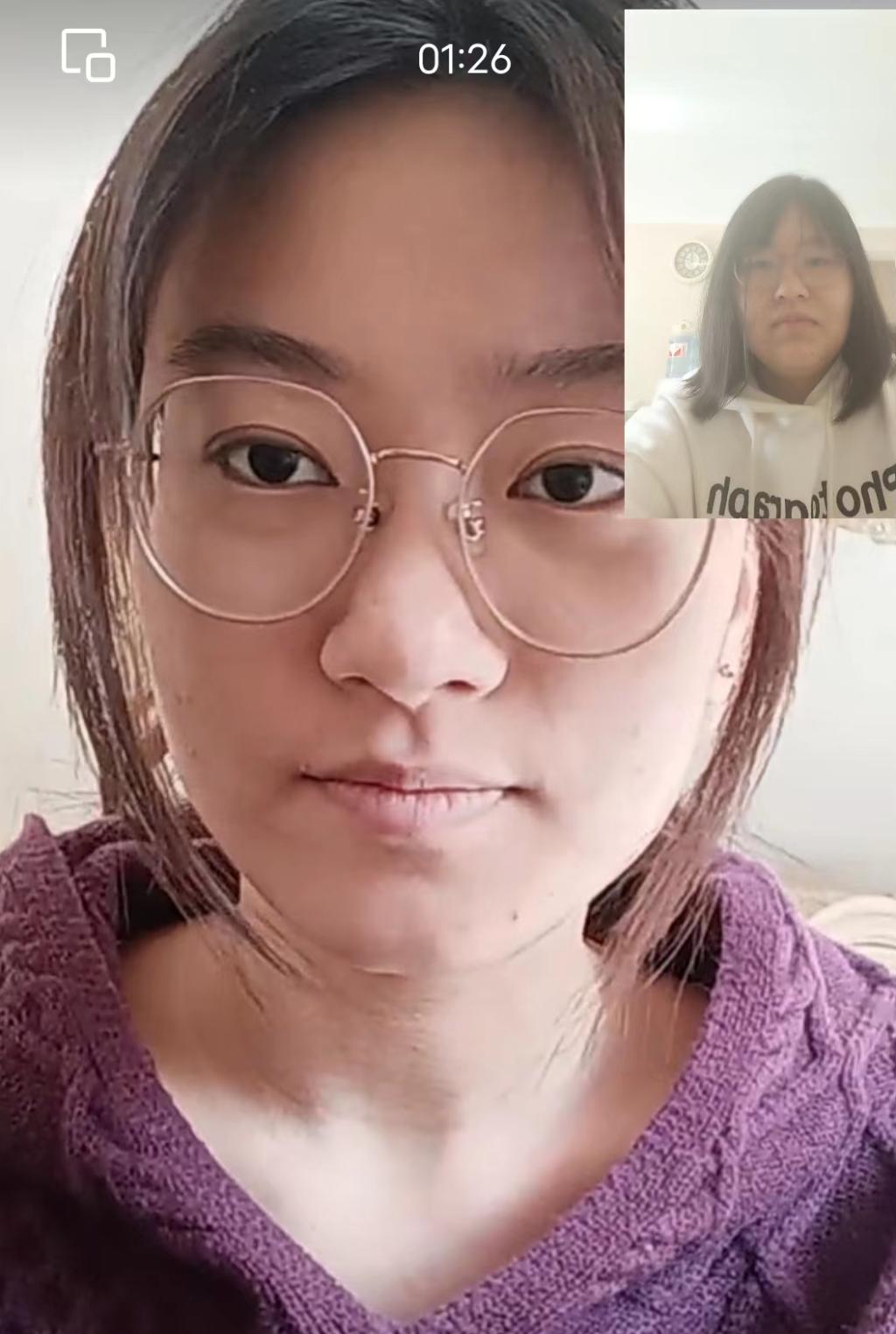 我和高中的数学老师郭丹丹采用视频通话的方式,聊起了我在大学的生活情况,讲述了我所在大学的发展历史,以及学习和生活中的一些有趣、有意义的事。郭老师很高兴我能和她聊天,鼓励我利用大学时光努力学习,将来成为对社会有用的人。