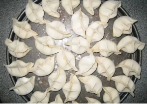 我提前先把面和好,然后把饺馅调出来,把饺子皮擀出来,按照老师所教的步骤,一个个圆滚滚的饺子就包完了。