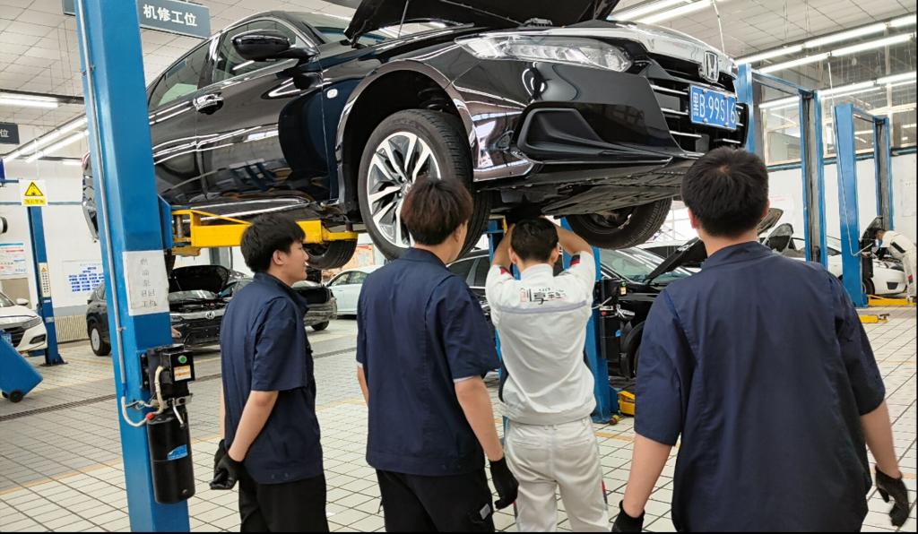 在汽车售后实习岗位中,维修车间的兼职指导教师集中解决学生的疑问,学生能够主动向工作人员请教,并且得到耐心讲解。实际操作让学生更好地掌握工作要领。