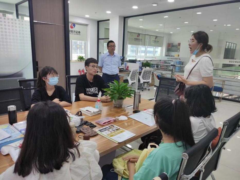 7月12日下午,互联网金融专业老师王玉洁和生涯导师王文晶前往实习单位银河证券检查互联网金融2021级5名学生第五周的实习情况。
