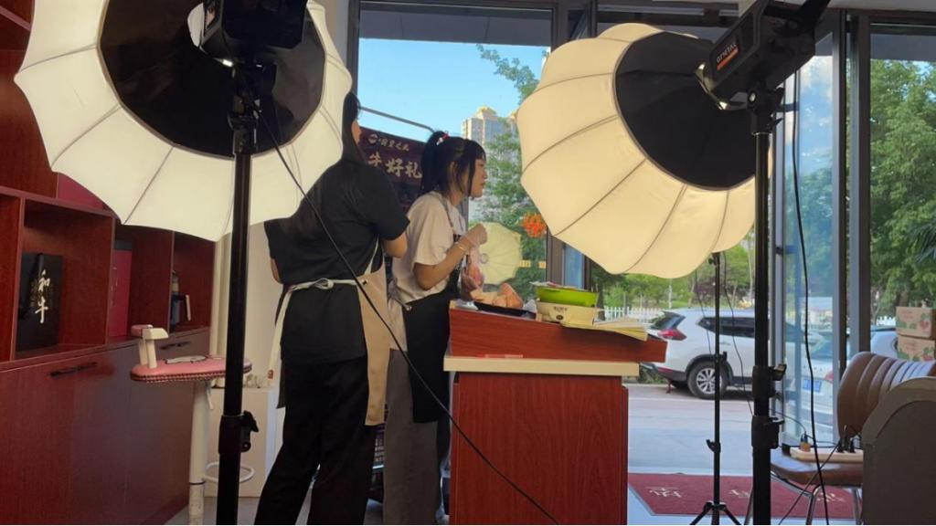 实习的前两周,陈伟博实习小组一直在做和牛产品的直播工作。陈伟博、李婉婷和申雪做主播,张昕和邢怀祎做运营。在企业导师的指导下,团队共试播七场,出单四个。