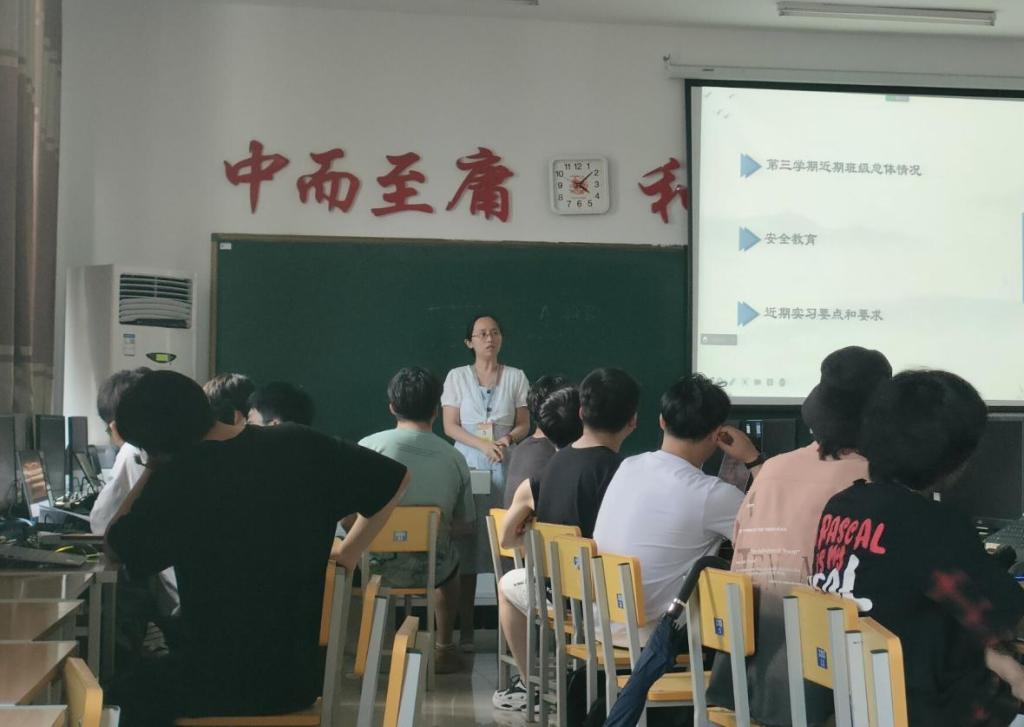 会议就第三学期近期班级总体情况、安全教育和近期实习要点及要求三方面展开。