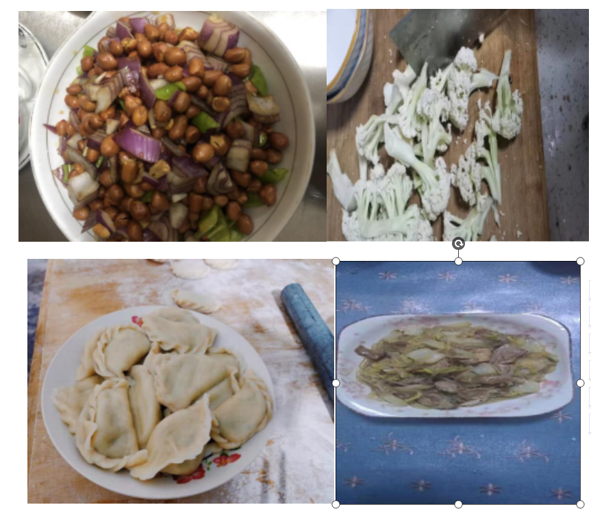 1月15日,我组安排为父母做一顿饭的活动。朱文龙选择做白菜肉片,任露瑶做了韭菜鸡蛋饺子,韩雨轩做醋溜花生,万梦然做爆炒花菜。有前几次第四学期的做菜经验,大家的厨艺都有所长进,做每道菜时长平均三十分钟,做好后和父母坐下来,一起品尝,和父母聊天,共同度过这美好的一天。父母品尝过孩子给自己准备的这份成果时,脸上洋溢出欣慰的笑容,都纷纷表示味道很好,孩子长大了。