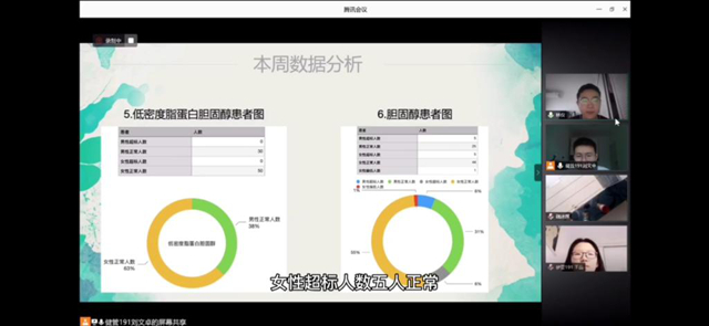 7月20日-8月7日,我们小组同学已进行了三周的第三学期线上实习,对指导老师下发的慢性病患者各项指标进行筛选和数据分析并拍摄健康宣教视频。我和小组的林仪、刘文卓、魏建辉同学通过QQ群、腾讯会议平台进行讨论交流,对慢性心力衰竭、脑血栓形成、肺炎球菌性肺炎这三个慢性病进行数据分析,上网查询病因、临床表现和健康管理方法等相关资料,全体参与录制健康宣教视频,并能在拍摄视频时流利地进行讲解。
