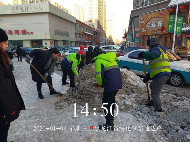 1月8日,GL-GY-027组的同学们在肇东市环卫管理处开展了关爱环卫工人的主题公益活动。与相关部 负责人联系后,同学们前往街道清理积雪现场参加劳动,环卫工人对同学们的帮忙感到十分高兴,同学们也在劳动中切身体会到“劳动美”。