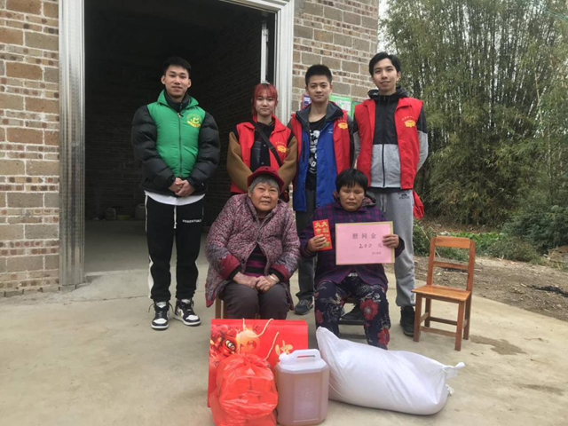 1月13日,我们小组同学到玉林市镇石村一困难户家开展公益活动。这家生活着两位老人,一位双目失明、一位需要很大声讲话才能听见。她们平常互相照顾,政府和爱心人士出资,让她们从危房住进了宽敞的家。我们给她们带去一些生活用品,帮她们打扫卫生、收拾屋子,还陪她们说说话,让她们感受到来自大学生的关爱。