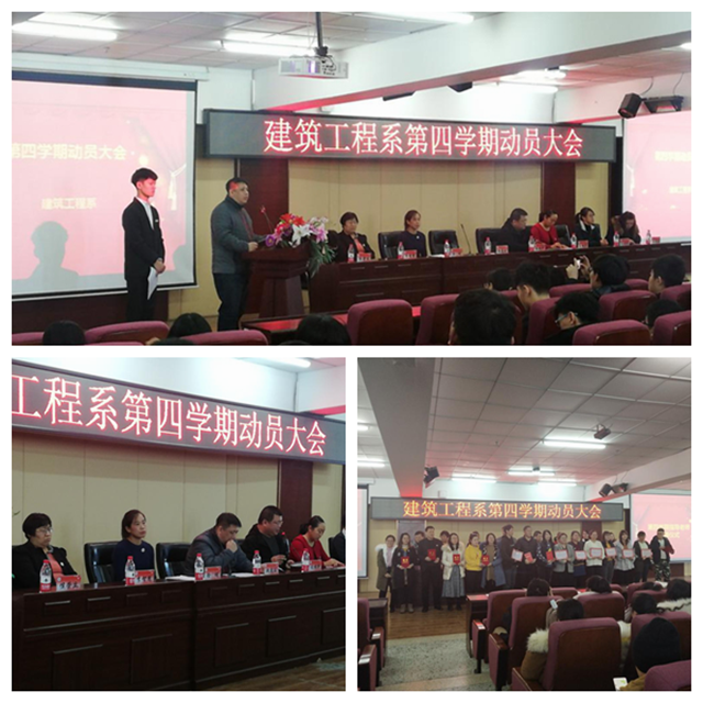 2019年12月31日,建筑工程系在图书馆501报告厅召开第四学期动员大会。学校副院长张振笋、建筑工程系领导、各专业负责人、辅导员老师及第四学期指导教师与各专业学生参加会议。
