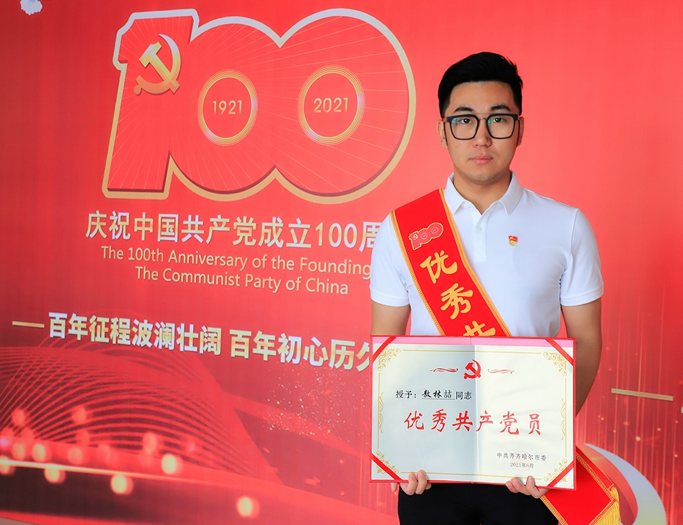 敖林喆始终将政治坚定、师德高尚作为立身之本,以“四有”好教师标准严格要求自己,以“为党育人、为国育才”为己任,多次获得校级优秀共产党员、师德先进个人。在中国共产党成立100周年之际,获得齐齐哈尔市优秀共产党员。