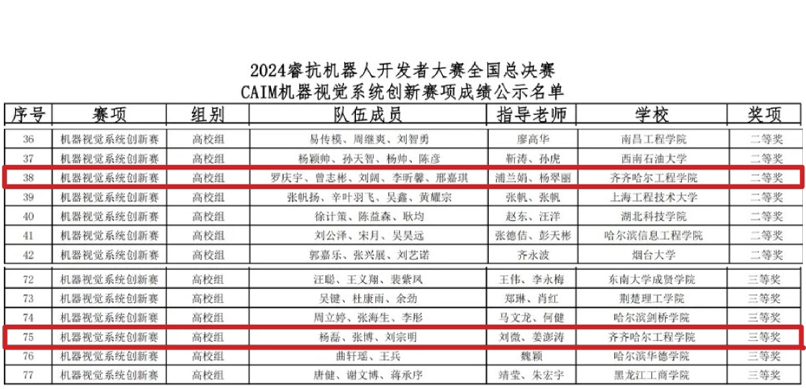 近日,2024睿抗机器人开发者大赛全国总决赛-CAIA机器视觉系统创新赛在杭州圆满结束。学校机电工程系机器人工程专业221班罗庆宇等8名学生在此次比赛中荣全国二等奖、三等奖各一项。