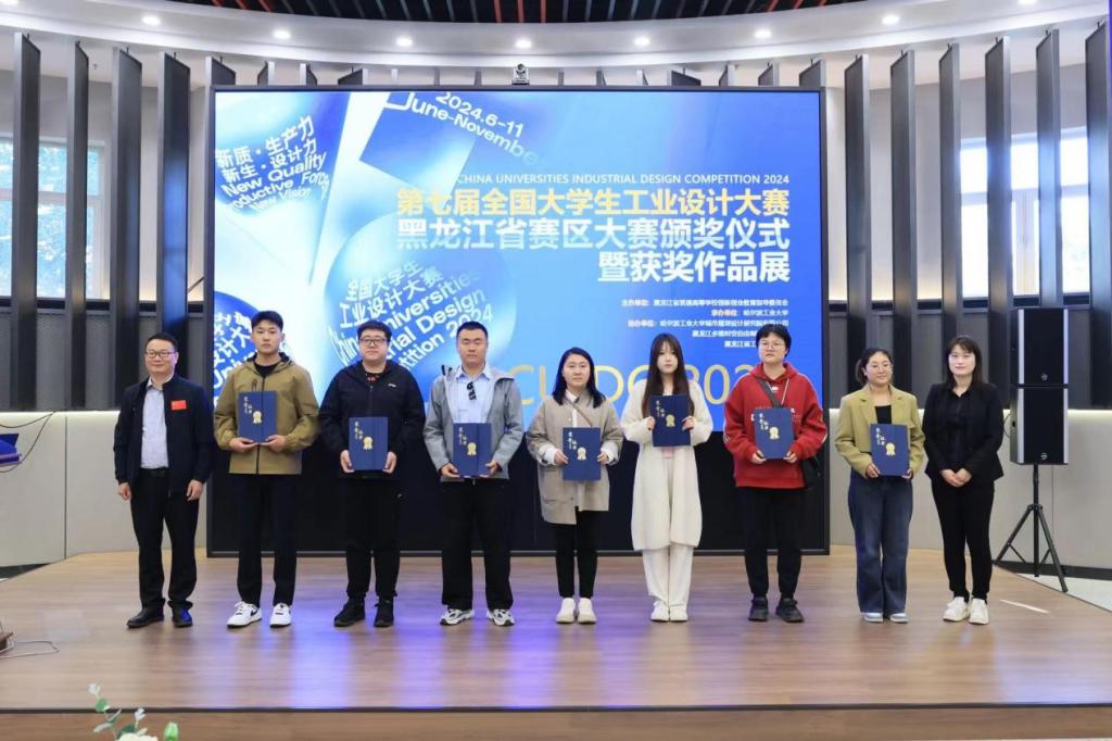 近日,第七届全国大学生工业设计大赛黑龙江赛区颁奖仪式在哈尔滨工业大学建筑与设计馆举行,我校机电工程系机械设计制造及其自动化专业学生李子昂、方瞻未、明海军荣获黑龙江赛区一等奖(晋级国赛),龙凯、高原、余显义荣获黑龙江赛区三等奖。机电工程系高鹏老师获评优秀指导教师。