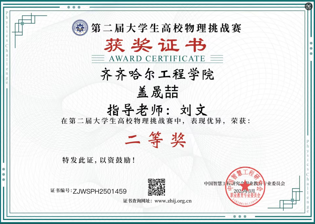 本次竞赛由中国智慧工程研究会职业教育专业委员会主办,吸引了全国各地多所高校学生积极参与。在接到赛事通知后,学校大学物理教研室非常重视,赛前精心筹备,选拔优秀学生参赛,并安排教师进行针对性辅导。比赛中,面对复杂的物理问题,参赛学生凭借扎实的物理知识和出色的逻辑思维,沉着应对,最终取得好成绩。