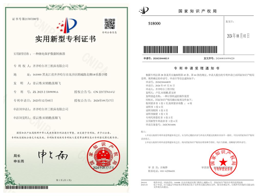 2023年她和一群志同道合的同学携手成立了聚星创业团队,并在团队不懈努力下,2024年成功创立了齐齐哈尔日晖科技有限公司,这家公司的诞生不仅标志着团队从创意到实践的蜕变,也预示着她的团队在科技创业道路上迈出了坚实的一步。在2023至2024学年,宋婧鹏团队凭借优秀的创新能力和深厚的技术积累,成功获批两项实用新型专利。