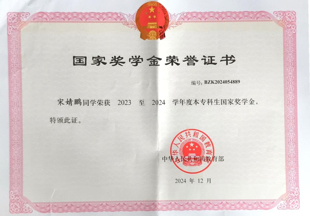 宋婧鹏积极向党组织靠拢,大学伊始便递交了入党申请书,大一期间被确定为入党积极分子。作为中共预备党员,她将党章学习融入日常,以 “思想上先入党、行动上争先锋” 为准则,从课堂理论学习到志愿服务实践,始终以正式党员标准严格要求自己,获得2023年度三好学生、2024丁香奖章、2023-2024学年青年马克思主义培养工程优秀学员等荣誉,她用实际行动诠释了新时代青年的责任与担当。