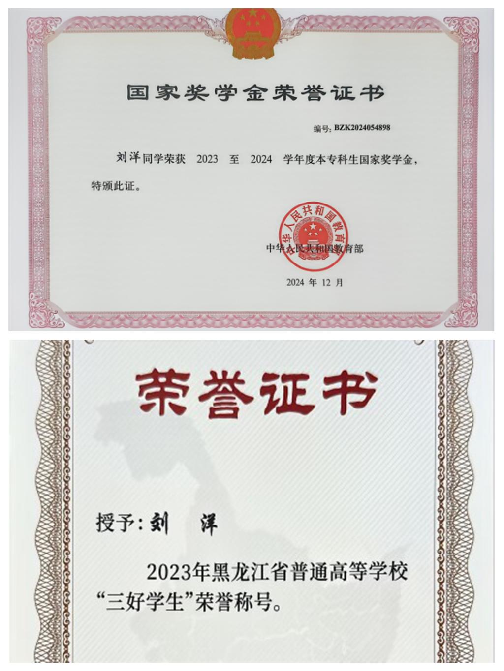 刘洋勇于挑战自我,积极参加各类竞赛,在2024年全国大学生创新创业能力大赛初赛创新思维大赛获一等奖、第28届caticsCAD2D个人赛获三等奖,带领团队获黑龙江省第十一届插花花艺大赛省级银奖、2023年“筑梦杯”全国大学生建筑创新大赛二等奖、第三届全省艺术类高校教学成果展示活动绘画类优秀奖等。