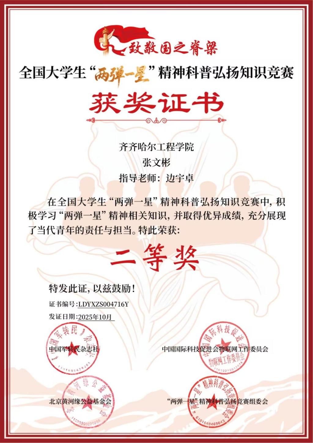 【喜报】学校学生在全国“两弹一星”精神科普弘扬知识竞赛上取得佳绩