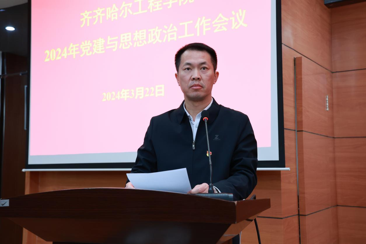 3月22日下午,学校党委在图书馆601报告厅召开2024年党建与思想政治工作会议,院长、党委副书记曹然彬主持会议。党委书记郭伟东出席并讲话,学校党委委员、党务工作者、马克思主义学院、工会办公室、学工处全体教职工、民主党派负责人及各部门领导干部参会。