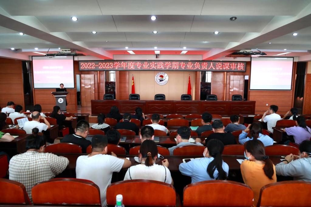6月13日下午,学校2022—2023学年度专业实践学期专业负责人说课审核在图书馆601报告厅举行。理事长曹勇安、教务长张静出席,教务处副处长冯洁,各系部中心主任、教学副主任及全体专业负责人、任课教师线下参会,其他教学相关人员线上参会,教务处实践教学科科长康琦主持。