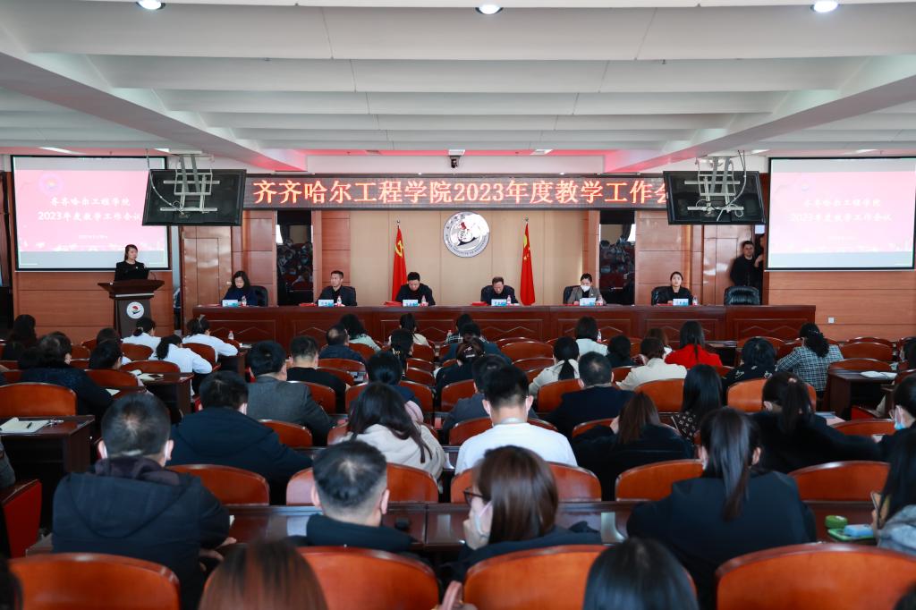 为深入学习贯彻党的二十大精神,落实学校教代会工作部署,总结学校2022年教学工作,推进2023年重点工作和“双特”建设。3月28日下午,学校在图书馆601报告厅召开2023年度教学工作会议,理事长曹勇安、院长曹然彬、党委书记郭伟东、副院长白雪,教务长张静、院长助理陈景鑫出席会议,各部门干部、骨干教师现场参会,其余教职工线上参会。会议由教务处副处长冯洁主持。