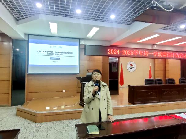 随后,孟艳辉强调了工作要点:一是课程负责人要做好自评工作,加深课程内涵建设;二是各开课单位及专业要加强课程建设的指导与检查;三是课程评估组要客观公正,并与课程负责人、开课单位开展座谈,多沟通交流,保质保量、按时完成校级评估工作。