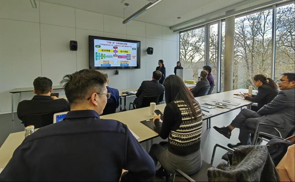 11月25日,考察团成员抵达德国海尔布隆应用技术大学,该校Alex教授与考察团成员围绕数字化转型与未来人才能力模型和德国应用科学大学专业设置、培养模式与发展趋势等内容开展了深入的研讨。研讨会上,我校康护工程系主任郭玲玲向德方专家介绍了“四真三化”(FT)课程建设原理与方法, Alex教授表示十分赞赏,双方就如何构建课程质量保障体系等问题进行了深入探讨。