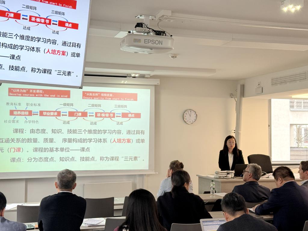硅湖职业技术学院校长助理张盛、南宁学院智能制造学院院长陶兴华团队在会上分享了实践案例,并以团队形式与德国专家现场对话,就校企合作机制、课程建设平台搭建、教材开发及教学组织创新等问题展开深入交流。
