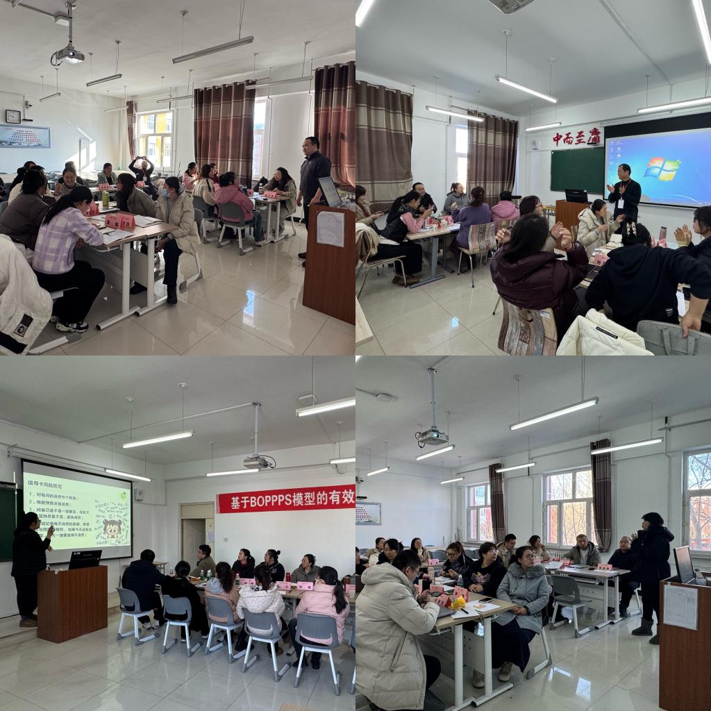 期间,张胜全教授带领团队四位培训师分成五组对58名教师开展了两轮 BOPPPS微格教学分组演练。教师模拟设计10分钟的授课内容,开展模拟课堂教学,同组其他教师以讨论发言的形式对展示教师的教学设计及教学方法进行反馈与评价,培训师对每位上台演示的教师进行了细致入微的点评与精心指导,参训教师纷纷表示受益匪浅。