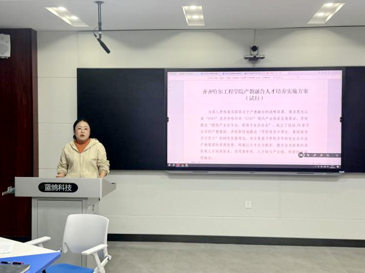 会上,张静带领大家回顾了《齐齐哈尔工程学院产教融合人才培养实施方案(试行)》,重点解读了产教融合人才培养的总体目标和实施路径。她强调,校外课堂及微专业建设是产教融合人才培养的重要举措,产教集团要及时发布岗位需求清单,各学院要根据专业特点认定对接岗位,双方协同打造企业预备队,发挥校外课堂与微专业协同育人作用,在助力学生实现毕业与就业无缝衔接的同时,也要注意过程积累,形成实践教学教程、横向课题等教科研成果,确保人才培养与产业技术发展同频共振。