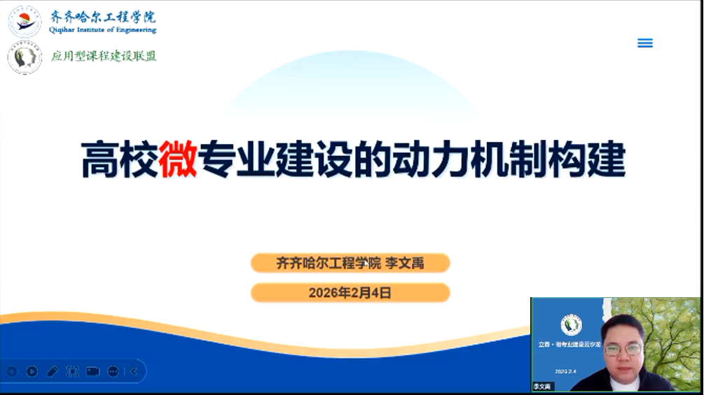 2月4日,由应用型课程建设联盟主办、我校承办的“立春·微专业建设云沙龙”在线举行。沙龙围绕“微专业建设原理与方法”主题,从学理逻辑、建设机制、数智赋能、平台协同等维度展开热烈研讨。活动通过微信视频号、抖音等平台进行公益直播,吸引了超过3000人次在线参与。