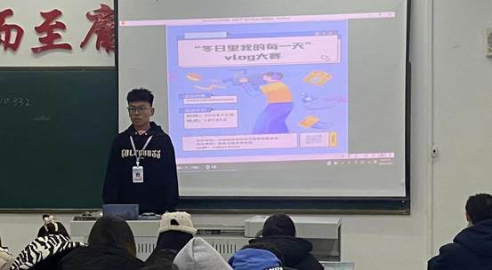12月5日,“冬日里我的每一天”VLOG大赛在1号教学楼1313举行。此次VLOG大赛通过生动、丰富的短视频记录了冬日里我校学子的温馨瞬间,展现出他们对生活的热爱和积极向上的品质。