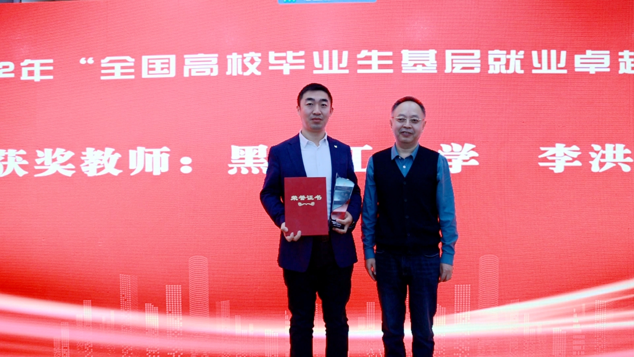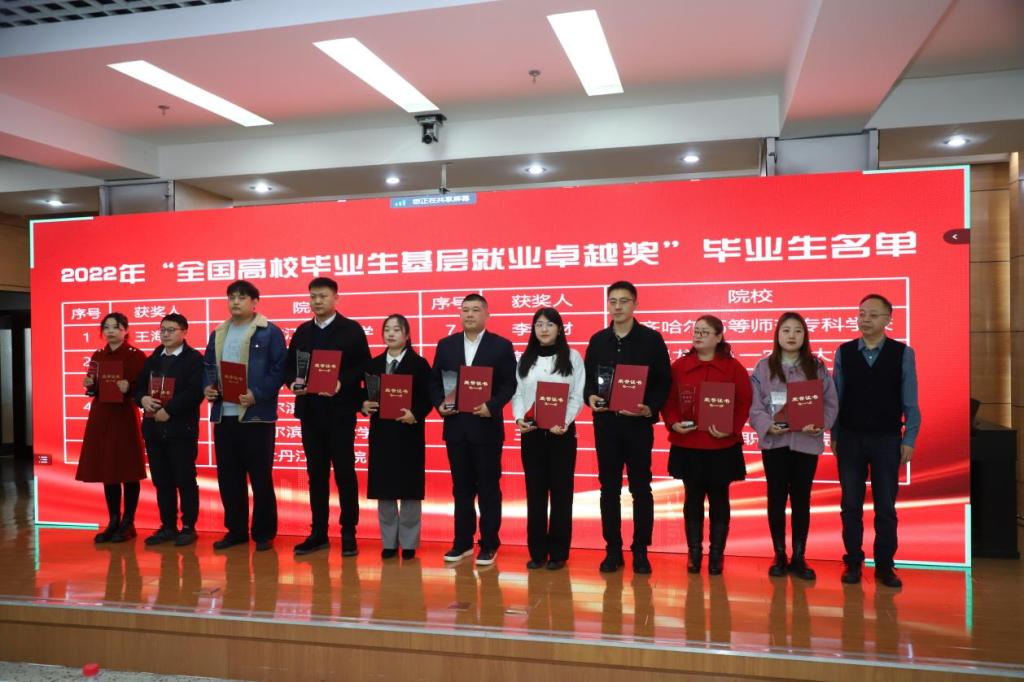 会议代教育部为2022年“全国高校毕业生基层就业卓越奖”举行颁奖仪式。郭承哲为获奖师生颁奖。