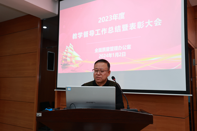 1月2日下午,在图书馆601会议室召开全校2023年度教学督导工作总结表彰大会。会议由全面质量管理办公室主任孟艳辉主持,副院长张静、教务处副处长李文禹、各教学单位教学工作副主任、校系两级教学督导员参会。