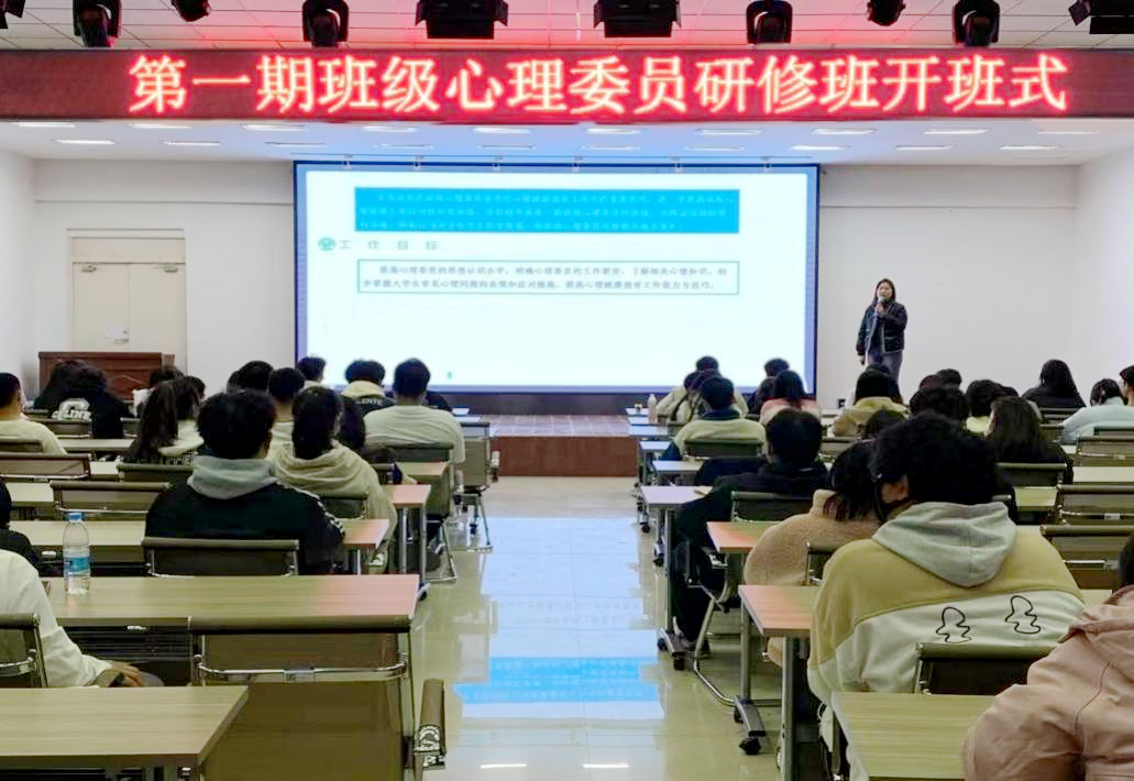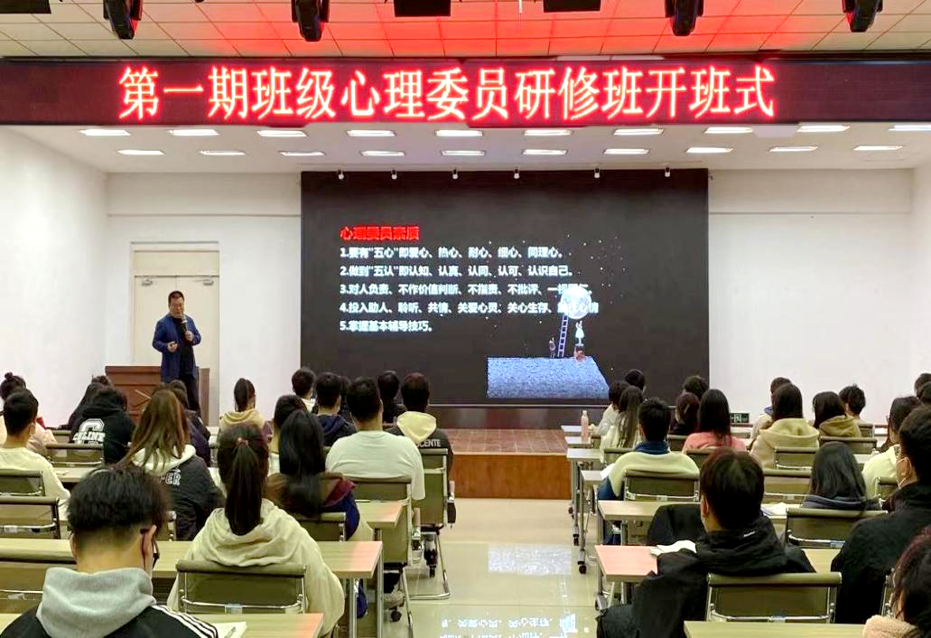 10月31日,学校第一期班级心理委员研修班开班式在二号教学区2508报告厅举行,本期研修班由学生发展中心与国家教育行政学院远程教育中心共同举办。大一至大三心理委员共150余人参加。