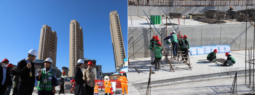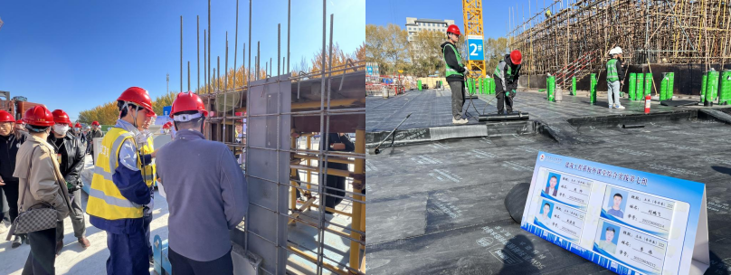 在建筑工程系教师的引领下,骨干学习班全体干部、教师有序地进行参观和学习。建筑工程系土木专升本222班徐昌钰同学为各位领导和老师结合校外课堂的实施情况进行介绍和讲解。校园北区建设项目分别包括中国能源建设集团东北电力第二工程有限公司负责的体育馆综合体;中建二局第四建筑工程有限公司负责的人民会堂、学生公寓A、学生公寓B。此项目是在我校与中建、中能集团的共同努力下打造的全国唯一教科研型工地示范区。目前,项目正在申报全省安全文明标准化工地及本省建筑最高奖项“龙江杯”和省级结构优质奖。