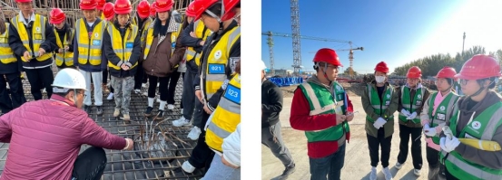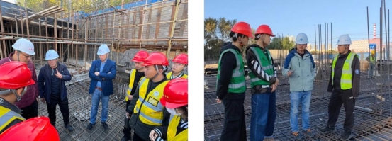 在施工现场,曹勇安理事长强调,校外课堂要坚持“以学生为中心”,要以学生的学习效果为中心,采用轮岗形式,让学生学到不同岗位的实践技能。建筑工程系的师生要珍惜校园北区的建设的宝贵实践机会,贯彻落实“真实环境、真学、真做、掌握真本领”的教学理念,全面推进校外课堂建设。
