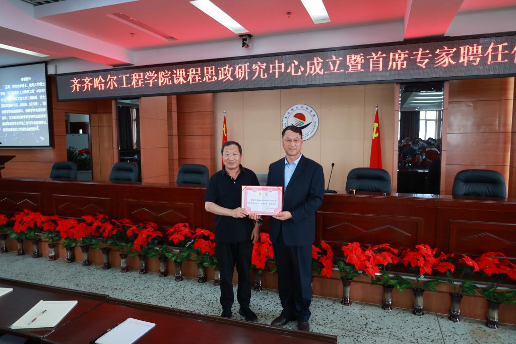 讲座开始前,学校举行了齐齐哈尔工程学院课程思政研究中心成立暨首席专家聘任仪式,院长曹然彬宣读了学校《关于成立课程思政研究中心的决定》,同时为课程思政研究中心首席专家王尧教授颁发聘书。