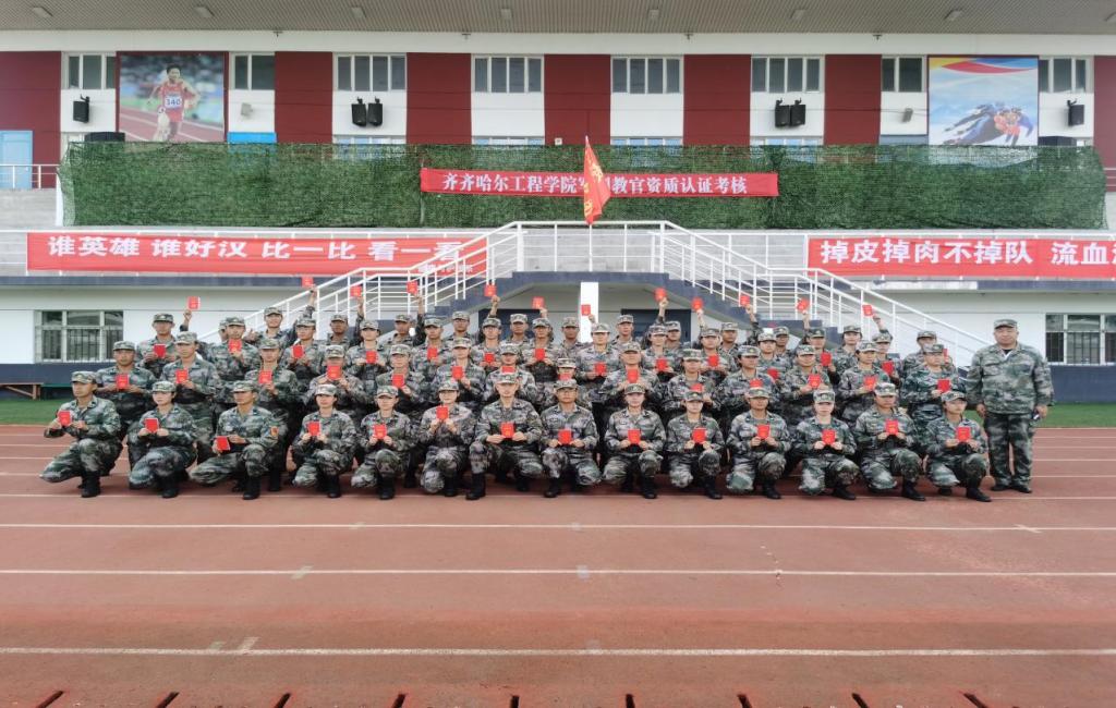 为提升学生军训教官的军政素质,提高军训教学水平,确保2022级新生军训顺利进行,8月26日,学校武装部在体育场开展军训教官资质认证考核工作。齐齐哈尔市龙沙区武装部部长庞永、军事科长郭涛应邀出席考核现场,学校副院长张振笋、学生工作处副处长郭明敬参加考核工作。