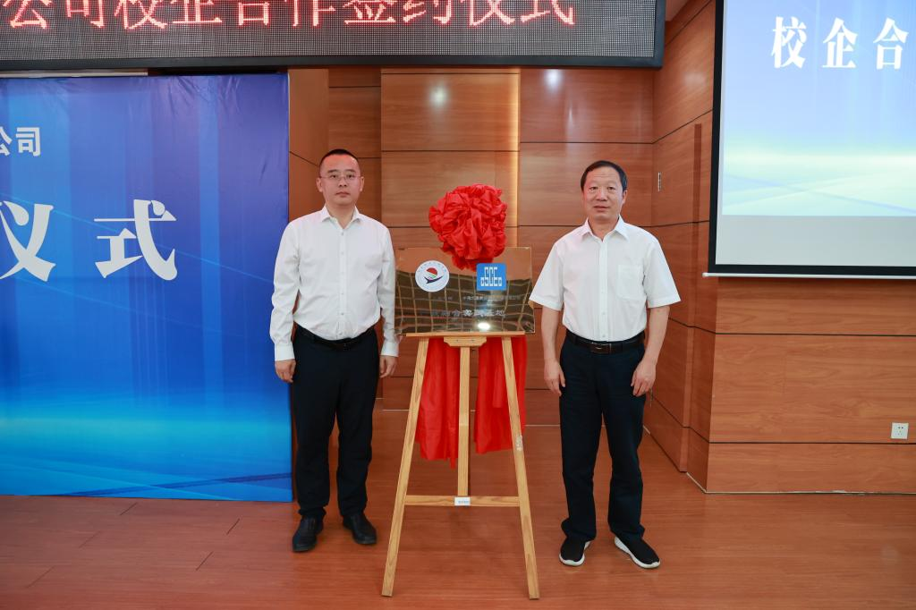 曹然彬院长、范捷总经理代表校企双方揭牌。
