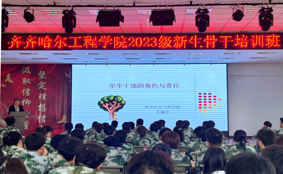 在开班式上,学生工作处负责人王丽萍宣读培训文件,并对培训班提出要求。此次培训过后给予合格新生骨干颁发结业证书,证书作为班级干部持证上岗的基础条件。