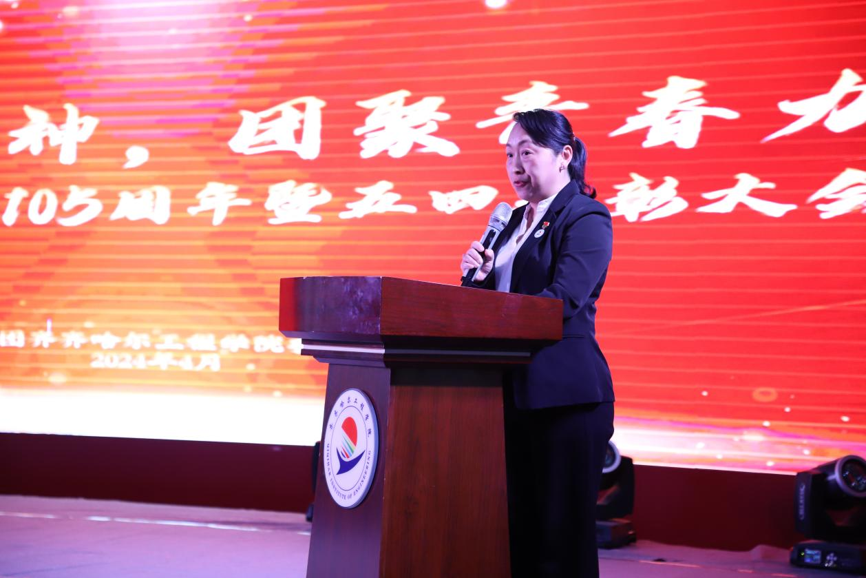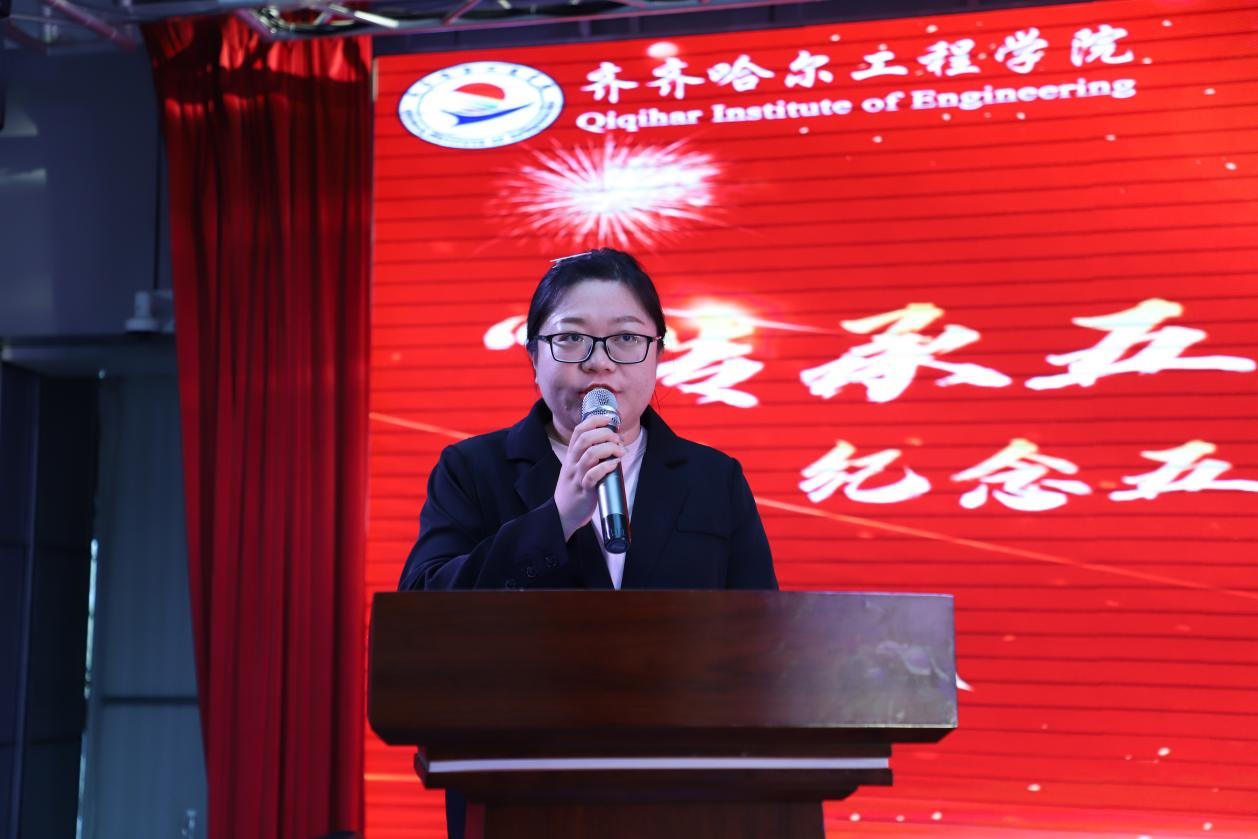 学生工作处郭慧莹老师宣读《关于表彰齐齐哈尔工程学院2023年度先进集体、先进个人的决定》。