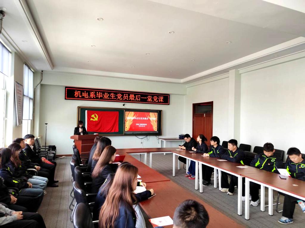 党旗引领铭初心,奋楫扬帆再出发。5月16日,机电工程系在图书馆608室开展毕业生党员最后一课活动。机电工程系党总支书记刘微、党总支副书记于海龙、党总支宣传委员吕嵩岩、汽服学生支部宣传委员王洪春、机械学生支部书记肖璐以及毕业生党员代表、在校学生党员共计50余人参加。