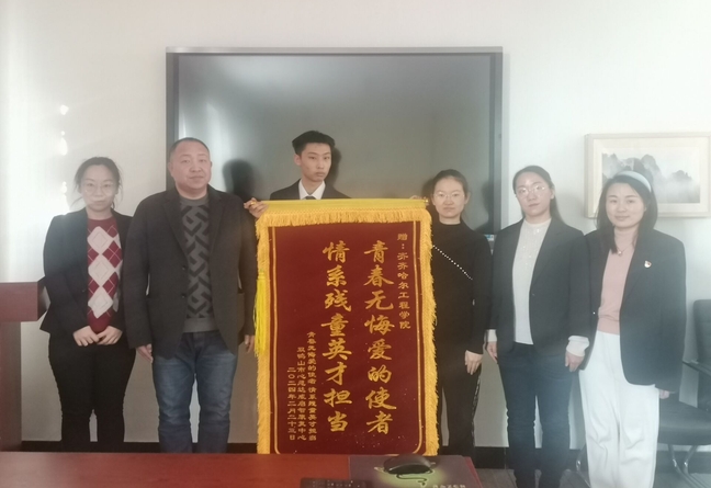 作为生涯导师,李妍老师深知每个学生都有其独特的潜力。她鼓励学生不仅要扎实学业,更要注重社会实践和个人素质的培养。在她的引导下,计科233班的孙博涵和刘展瑞同学主动联系双鸭山市心愿达成启智康复中心,设计并实施了一系列富有创意的志愿服务方案。本次社会实践活动中,两位同学携手来自牡丹江高校的两名学生,组成了多元化的志愿服务团队。他们充分发挥各自的专业优势,为康复中心的特殊儿童提供了教案编写、档案电子化、网络宣传维护等多方面的帮助。在持续的志愿服务活动中,学生们不仅锻炼了自己的专业技能,还收获了宝贵的人生经验。康复中心的负责人对李妍老师及其学生们的工作给予了高度评价,为了表达诚挚的感谢,中心的残疾人亲手制作了一面锦旗,赠送给齐齐哈尔工程学院,上书“青春无悔爱的使者,情系残童英才担当”。这一举动不仅是对学生们辛勤付出的肯定,更是对李妍老师优秀育人工作的认可。