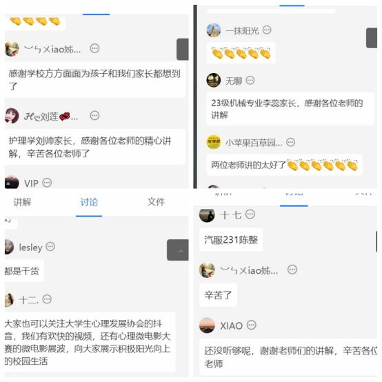 直播中,相关部门教师在评论区与学生和家长进行积极互动,耐心解答了家长们提出的各种疑问,并根据学生的具体情况进行个性化指导。整个交流过程气氛热烈和谐。家长们纷纷表示,这次活动不仅加深了他们对学校教学及学生管理工作的认识,还为他们提供了宝贵的教育经验和技巧。家长们对学校的工作给予了高度肯定,并表达了积极参与家校合作的愿望,共同致力于学生的成长与发展。